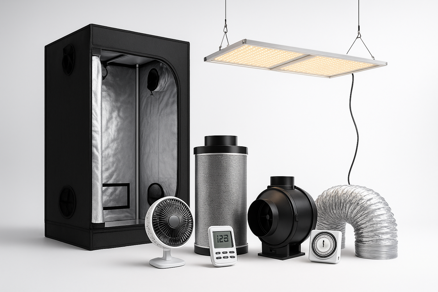 Grow & Gear seleziona solo grow box e kit affidabili, completi di illuminazione LED, sistema di ventilazione e accessori per coltivazione indoor. Perfetti per chi cerca precisione, ordine e risultati concreti — anche in poco spazio.